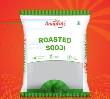 Roasted Sooji is a premium-quality semolina, perfectly toasted for enhanced flavor and easy cooking.